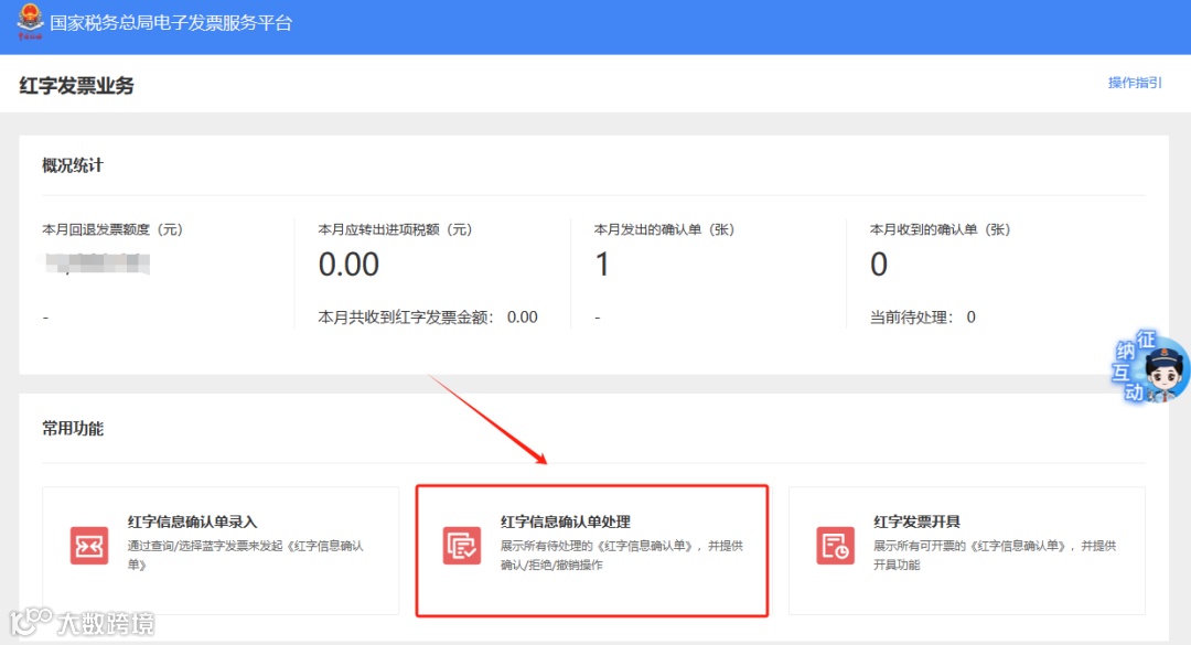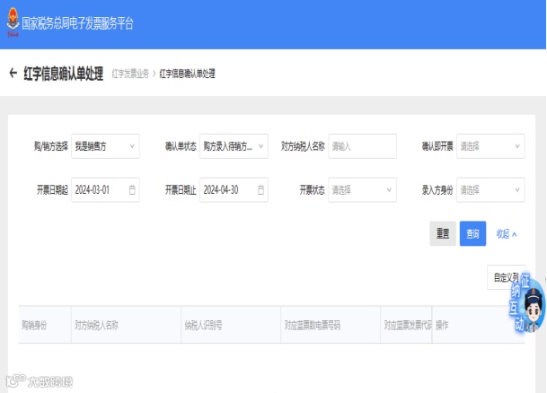 三、红字信息确认单处理页面处理。