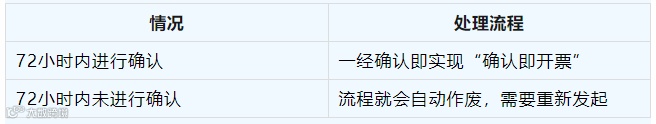 3.针对购买方已勾选已入账的蓝字发票进行红冲业务时,购销双方任意一方发起红字发票信息确认流程后,另一方需在72小时内进行流程确认,经确认后由销售方完成红字发票开具;若未在规定时间内确认,该流程将自动作废。后续如仍需开具红字发票,应重新发起发票信息确认流程。对不需要对方确认的红字信息确认单超过72小时也不会自动撤销。