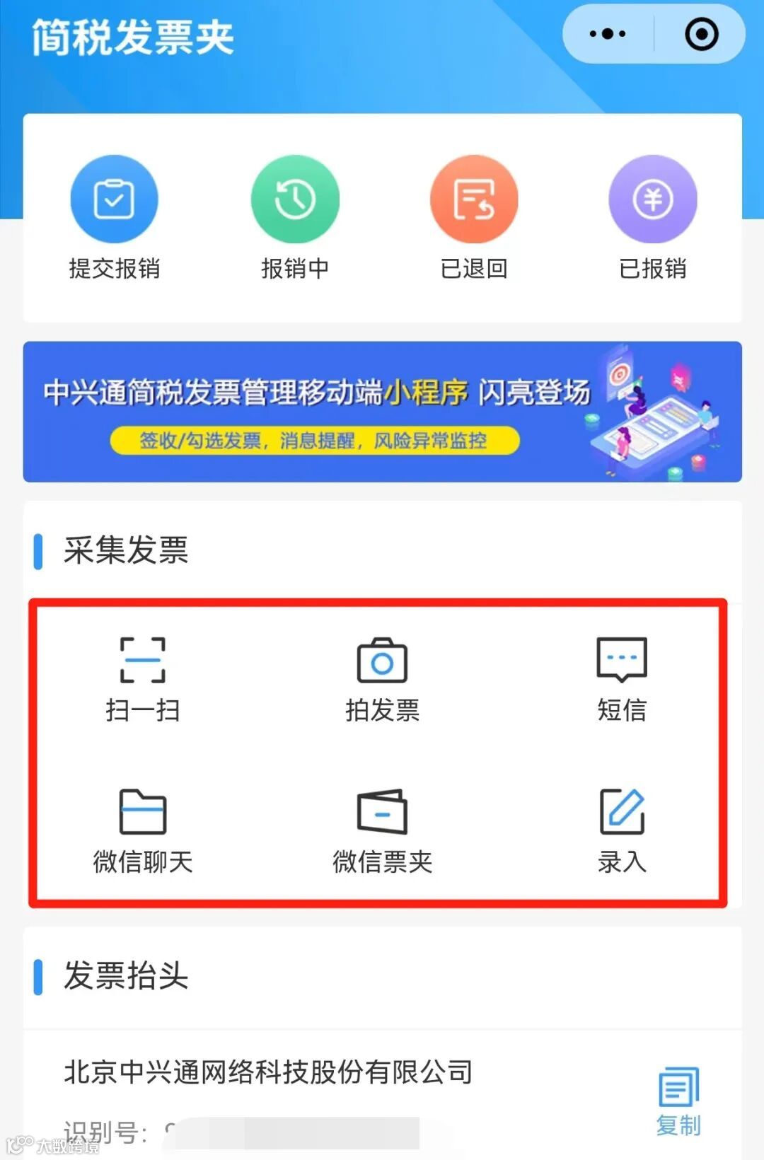 中兴通简税小程序发票采集页面