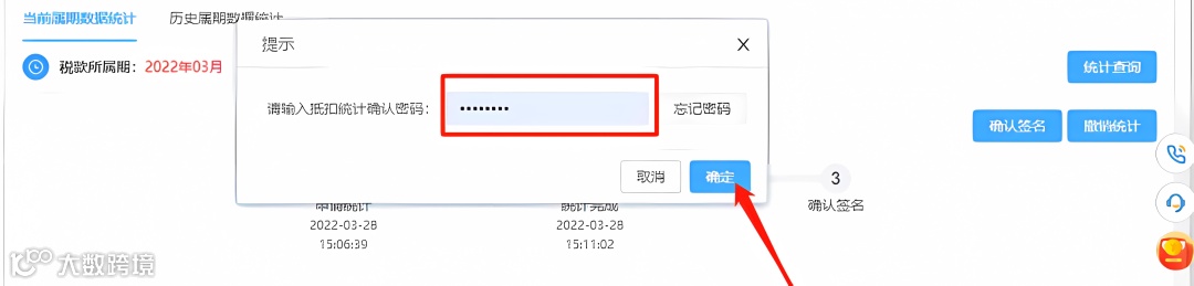2)输入抵扣统计确认密码;提交抵扣统计。