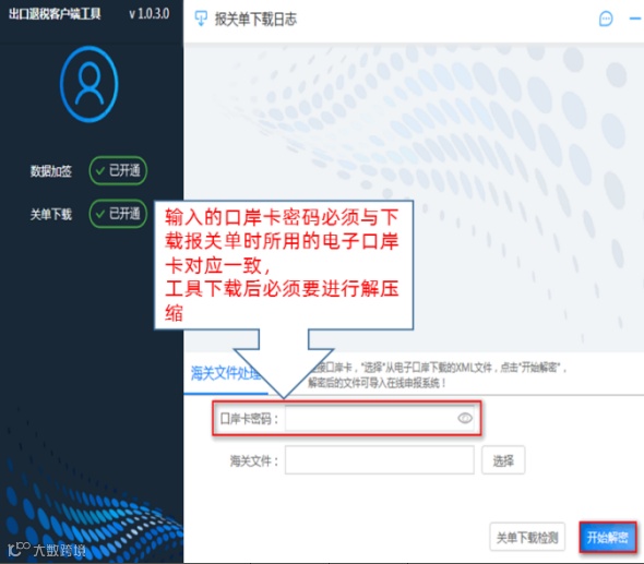 使用出口退税率客户端工具如何解密报关单?