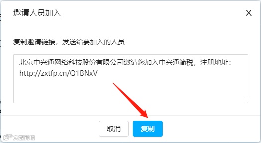 财务依次点击【去邀请】—【邀请员工加入】,查看弹窗中的邀请信息;