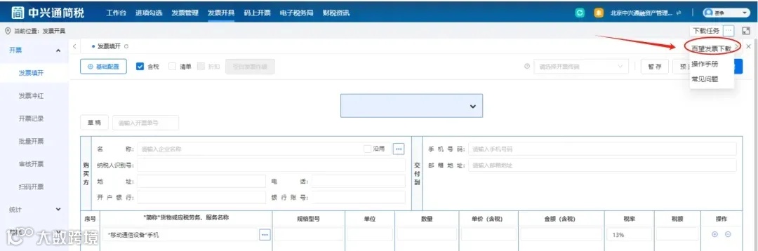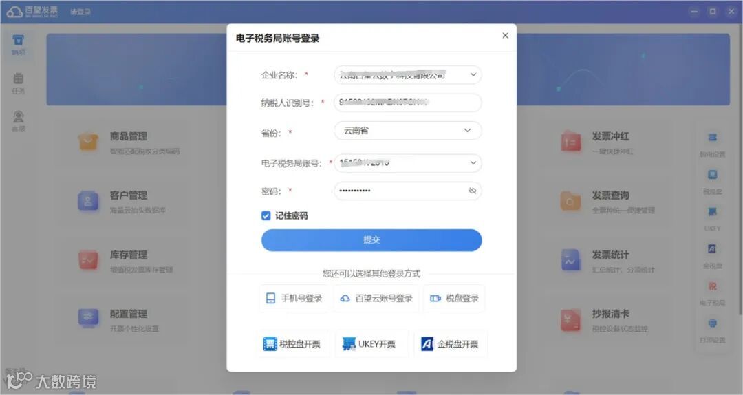 下载中兴通简税客户端(点击下载中兴通简税),登录后找到“发票开具”,点击右上角【百望发票下载】按钮,直接下载百望发票客户端至本地。安装完成后,可通过电子税局、百望云账号、手机号多种方式登录: