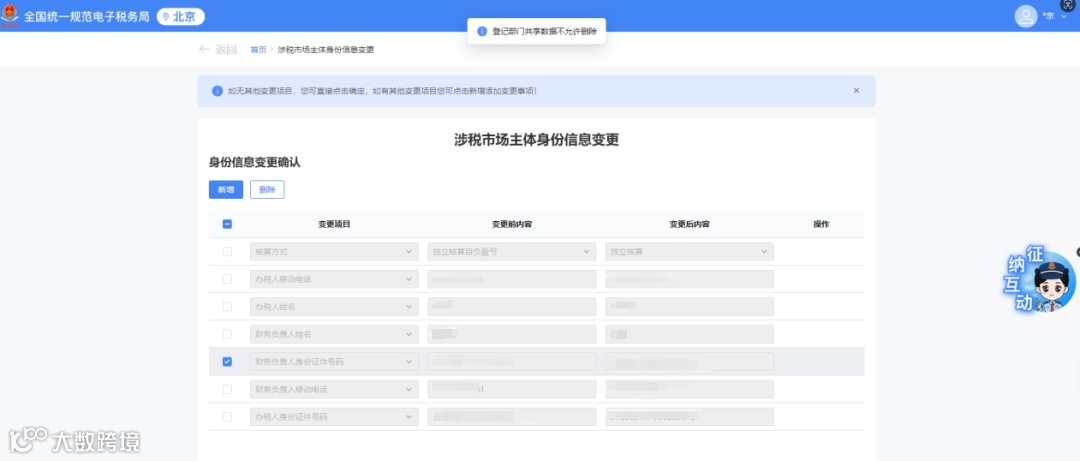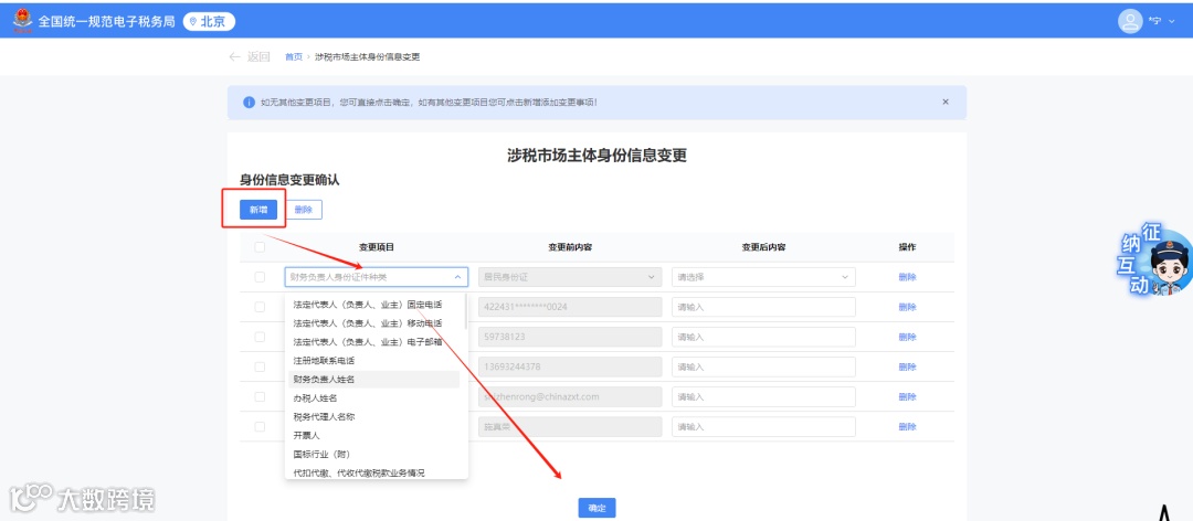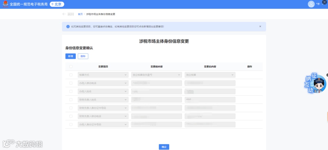 1)可以先检查变更后的内容是否正确,如正确可以勾选需要变更的项目点击"确定"进行提交;