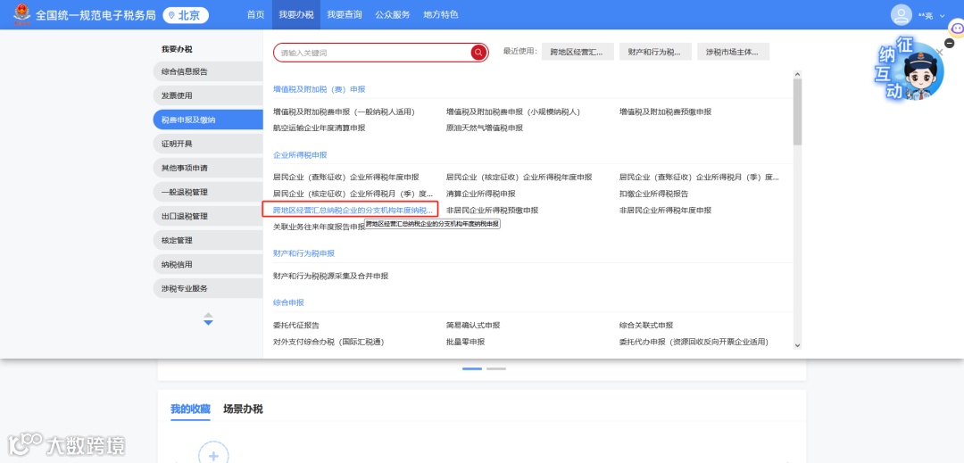 解决办法:您好,需要点击【我要办税】—【税费申报及缴纳】—【企业所得税申报】—【跨地区经营汇总纳税企业的分支机构年度纳税申报】进入申报。