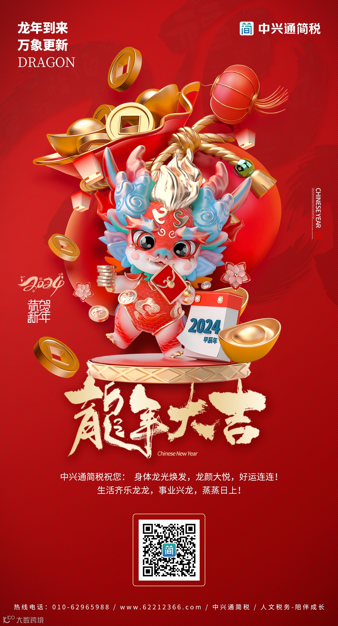 金龙贺岁,纳福迎春!中兴通简税给您拜年啦!