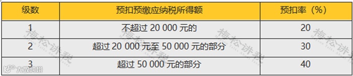 2)居民个人稿酬所得、特许权使用费所得适用20%的比例预扣率。