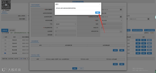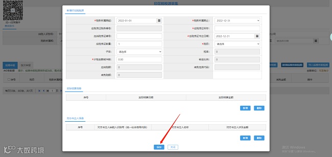 在此界面填写税源信息,其中税款所属期选择 2022 年1月1日至2022年 12 月 31日,带*项为必填项,需根据自身情况填写相关数据,必填信息全部填写完成点击【保存】,系统提示保存成功后点击【确定】即可;操作界面如下图: