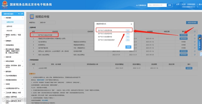 首先,登录电子税务局,依次点击【我要办税】-【税费申报及缴纳】-【按期应申报】-【财产和行为税合并申报】,如下图: