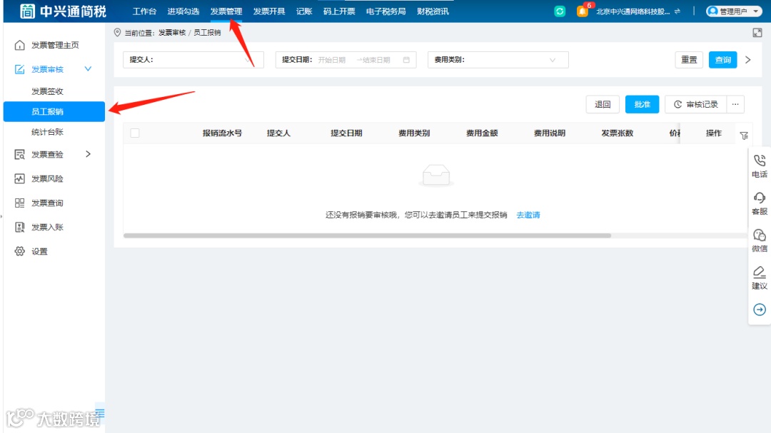 2、员工采集提交报销票据后,自动进行发票查验、发票查重以及票面信息的合规性检查。