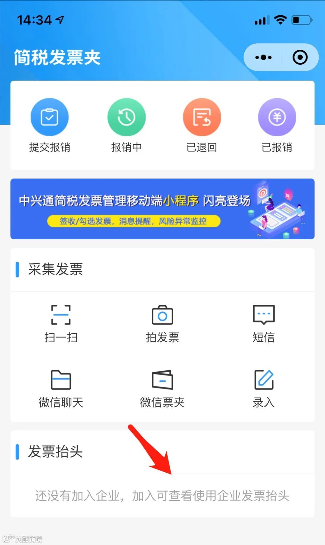 员工在微信搜索打开【简税发票夹】小程序,通过手机号即可一键注册;