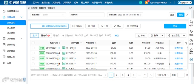 1、点击【发票管理】导航菜单下的【发票签收】按钮,跳转界面可查看已签收的发票数据。