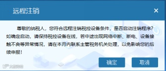 1)如具备资格则自动进行税控设备远程注销,远程注销完成后,弹出远程注销成功的提示提示信息,分别如下图所示:远程注销税控设备过程中的提示信息和远程注销税控设备成功的提示信息。