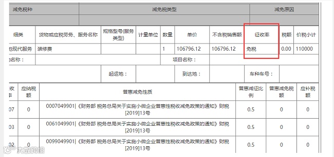 邮寄代开增值税普通发票,申报单填写界面税率选择免税,但提交成功后在发票寄送界面税额是按3%的显示的?