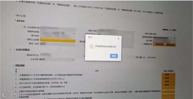 【增值税制度性留抵退税】,进入后选择预填报数据/自行填报点确定后都提示:获取退税初始化数据失败?