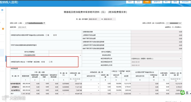 北京市电子税务局,一般人《增值税及附加税费申报表》附列资料五中[本期是否适用小微企业"六税两费"减征政策]栏次默认灰色显示【是】?