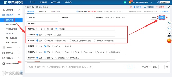 访问中兴通简税(www.quandianfapiao.com)后,进入“进项管理”栏目,按照具体业务功能需求进行操作即可。