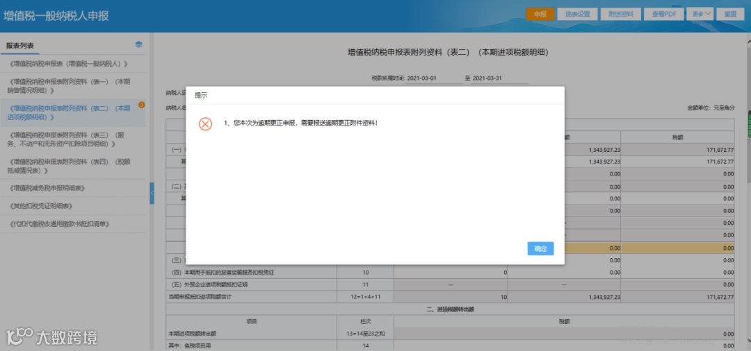 在电子税务局“更正往期申报”模块中更正往期增值税报表,点击“申报”时提示:您本次为逾期更正申报,需要报送逾期更正附件资料,如何处理?