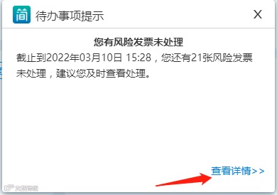 如果企业存在发票风险或发票状态异动,纳税人登录时,将收到1条【待办事项提示】,如下图↓