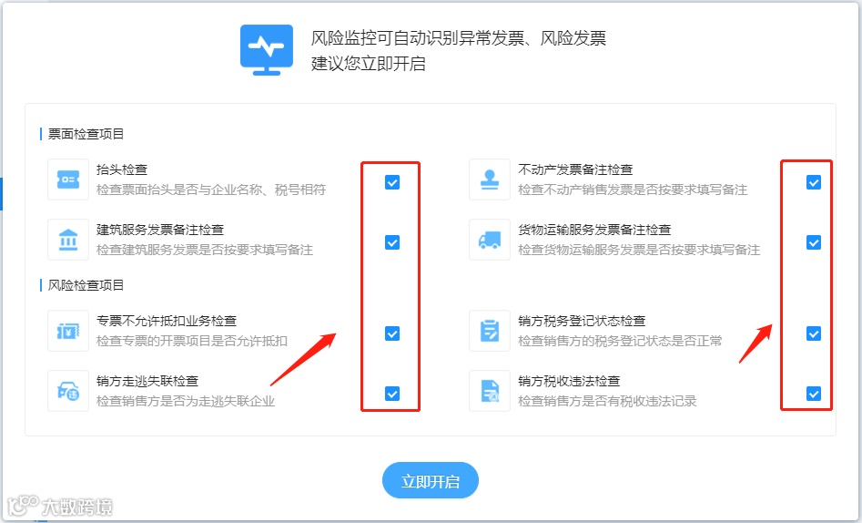 系统通过对发票抬头、品目、规格、税率、备注等,以及专票不允许抵扣业务、销方走逃失联、销方税务登记状态、销方税收违法等实时联网监控,助力企业构建一个全面有效的涉税风险防控网。