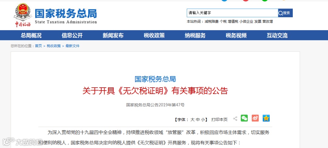 《无欠税证明》可以开具了!