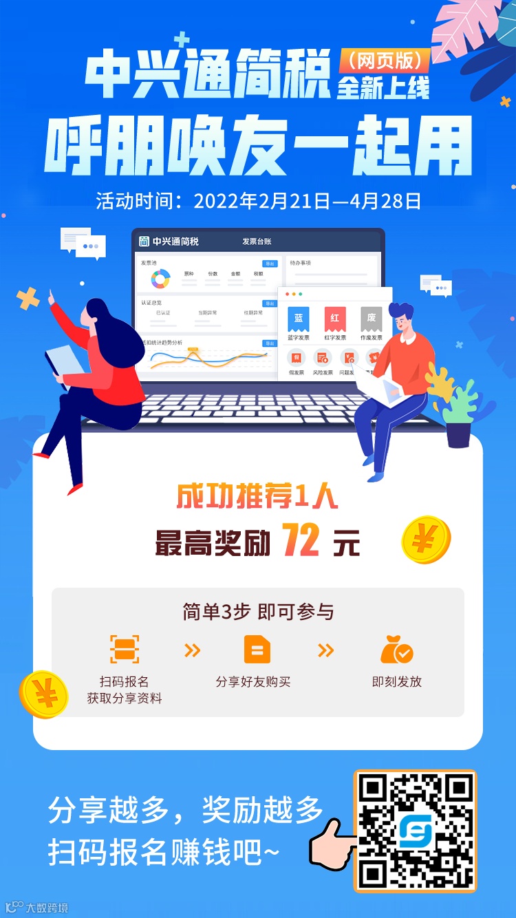 一键倾“薪”,推荐【中兴通简税】给好友,推荐1人购买,最高可获奖励72元。