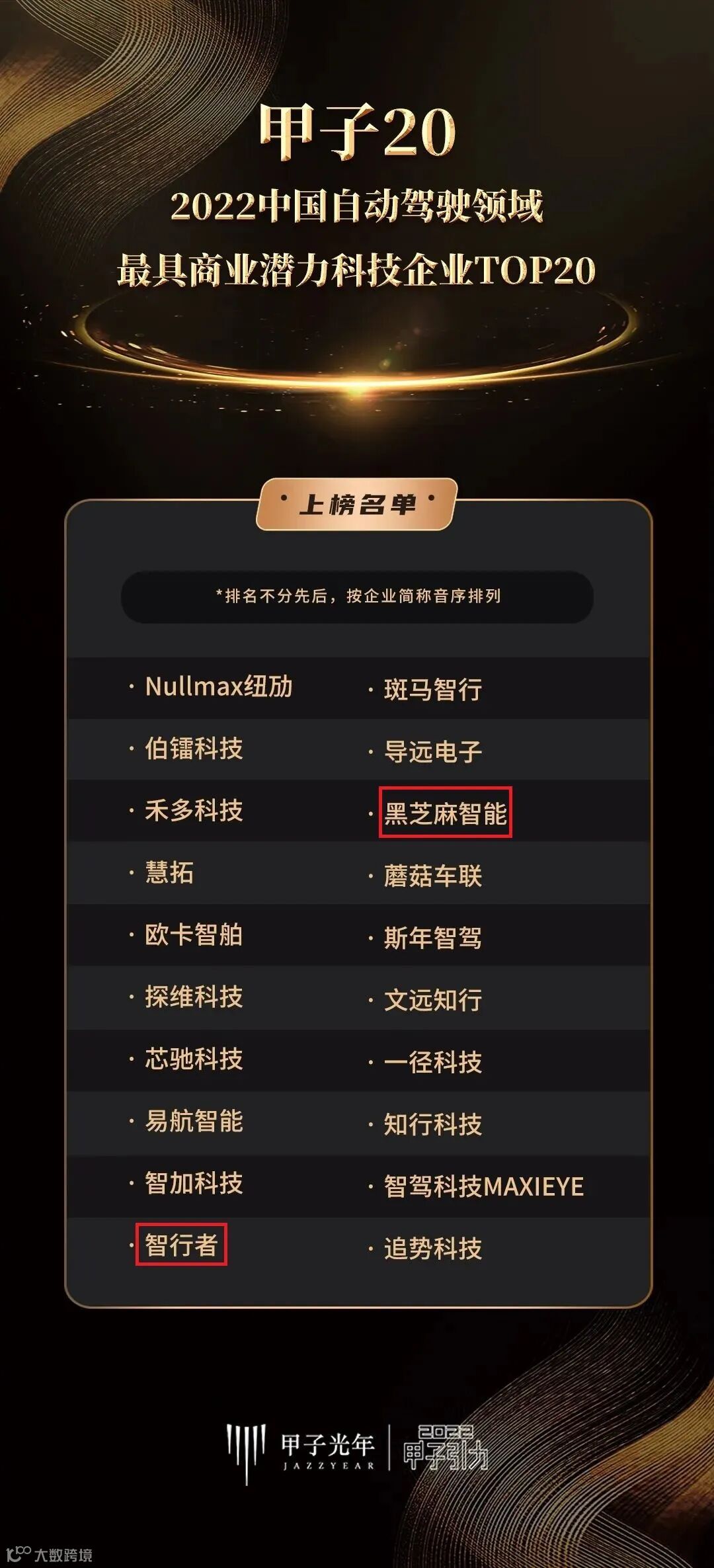 “甲子20”—2022中国自动驾驶领域最具商业潜力的20家科技Cool Vendor——智行者、黑芝麻智能上榜。