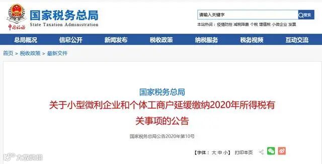 根据《关于小型微利企业和个体工商户延缓缴纳2020年所得税有关事项的公告》(国家税务总局公告2020年第10号):