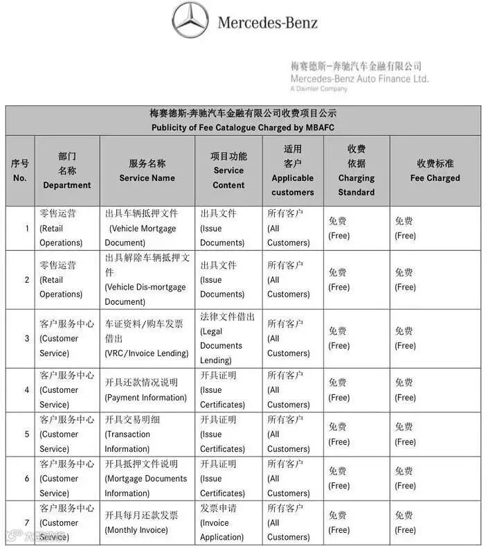 梅赛德斯-奔驰发表声明表示,不向经销商及客户收取任何金融服务手续费。