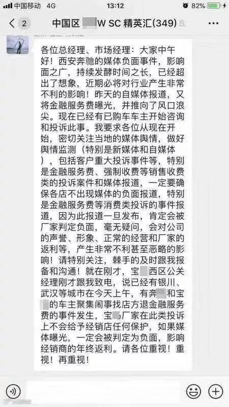 整个汽车金融领域的乱收费黑幕,或许会因事件的不断升级发酵得以揭开和净化。网传已有经销商集团、4S店采取紧急措施了。
