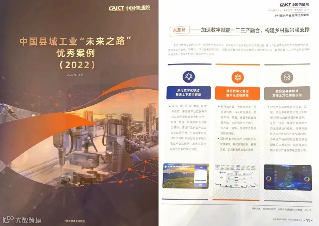 11月25日,由中国信息通信研究院(以下简称“中国信通院”)主办的“中国县域工业经济发展论坛(2022)”在江苏省溧阳市成功召开,《中国工业百强县(市)、百强区发展报告(2022年)》《中国工业发展形势展望2022》《中国县域工业“未来之路”优秀案例》等研究成果在会议期间正式发布。由浪潮集团旗下浪潮云、浪潮云洲联合承建的东至县产业数字化转型升级项目,作为乡村振兴产业支撑领域的杰出代表成功入选中国县域工业“未来之路”优秀案例,标志着东至县产业融合发展模式获得业界的权威认可。
