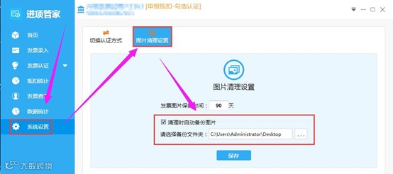 注:该功能只清理进项管家数据库中的图片数据,不会对用户自行设置的图片备份文件夹中的发票图片构成影响。