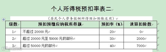 所以说,劳务报酬的个人所得税目前是和工资薪金适用一个税率表,合并一起算个税所得税的。