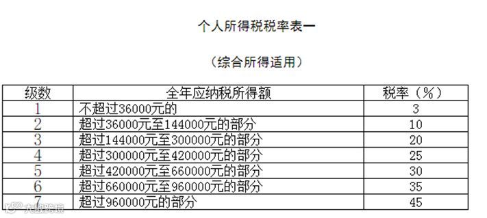 综合所得,适用百分之三至百分之四十五的超额累进税率。