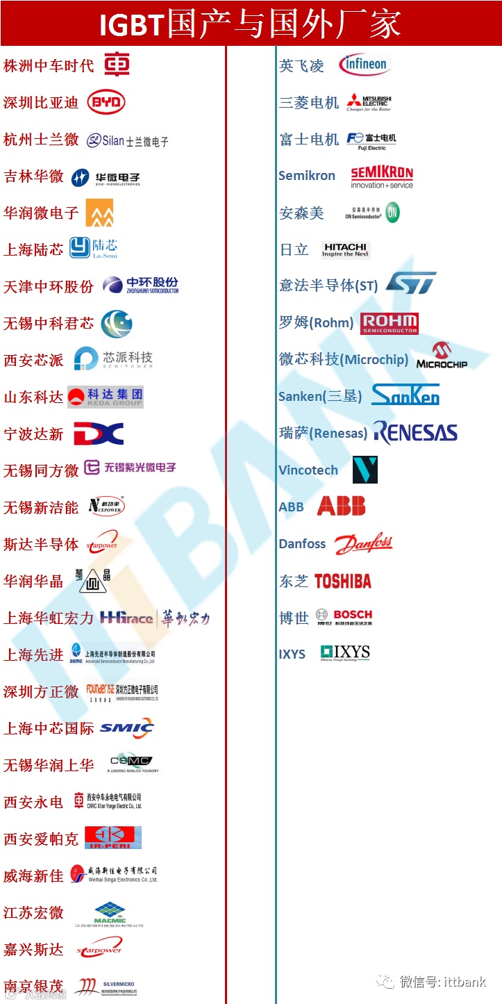 目前IGBT主要由欧日大厂主导,以英飞凌市占率超过32%居冠,日本富士电机、安森美半导体、东芝、意法半导体等也是主要供货商,相关公司多半是整合组件厂(IDM),并释出委外订单至中国台湾。