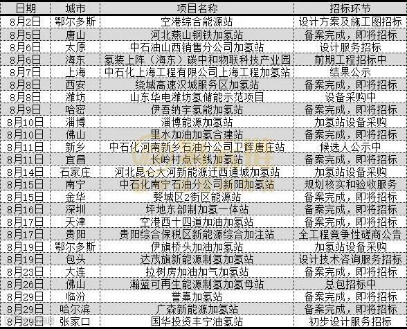 无论是国家政策还是地方政策,加氢环节都是较为重要的新型基础建设,随着国家财政资金的拨付以及各地方对于加氢环节的推进,加氢站的建设在复工复产后迎来了一波高潮,如图表2所示,尤其是8月份,加氢站相关项目达到了日均1座。