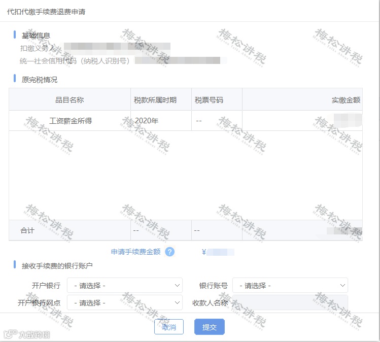5、形成申请表,填写开户行、开户账号、网点、收款人名称信息。确认无误后提交申请即可。