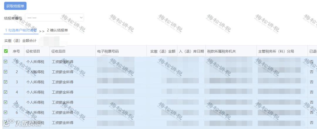 系统会显示出2020年代扣代缴的情况,对数据进行勾选。