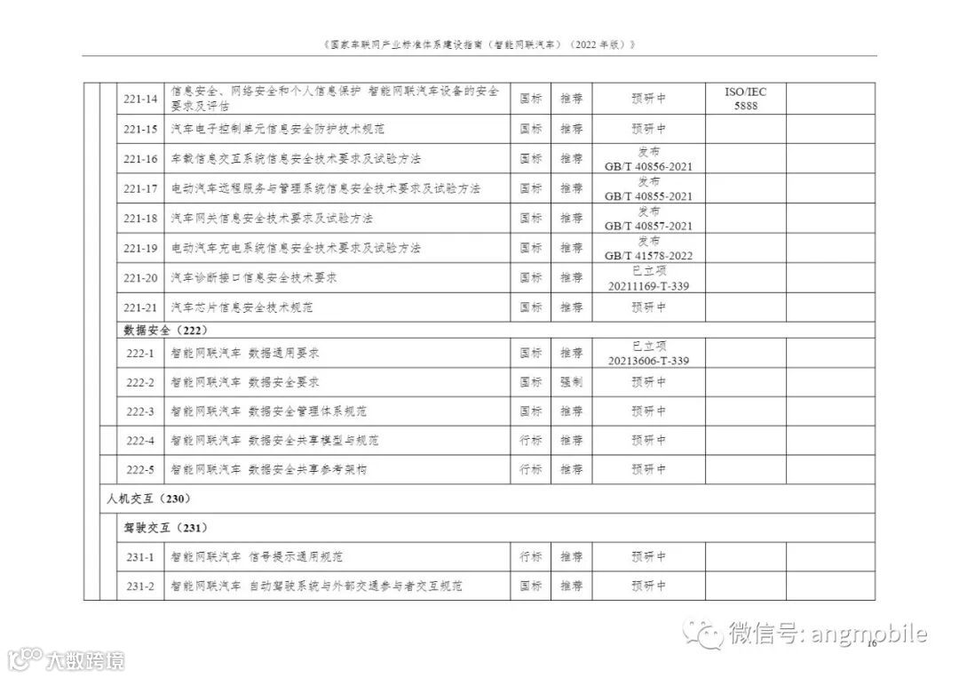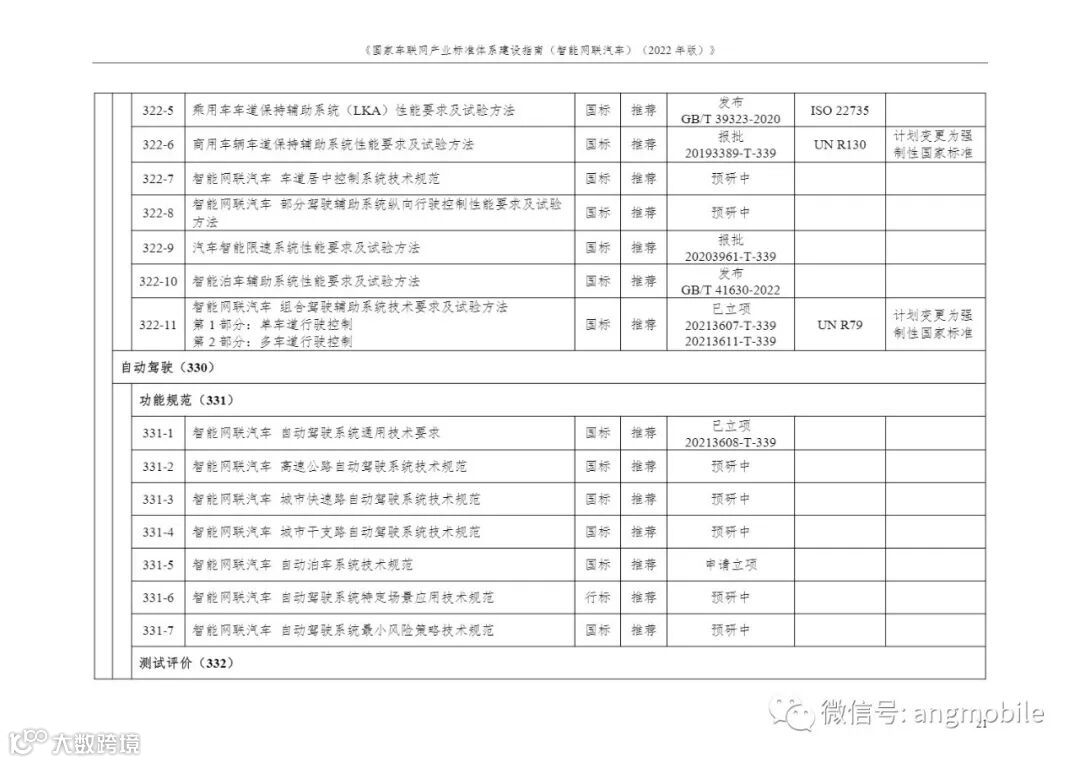 9月16日,工信部发布《国家车联网产业标准体系建设指南(智能网联汽车)(2022年版)》(征求意见稿)并公开征求意见,到2025年,系统形成能够支撑组合驾驶辅助和自动驾驶通用功能的智能网联汽车标准体系。制修订100项以上智能网联汽车相关标准,涵盖组合驾驶辅助、自动驾驶关键系统、网联基础功能及操作系统、高性能计算芯片及数据应用等标准,并贯穿功能安全、预期功能安全、网络安全和数据安全等安全标准,满足智能网联汽车技术、产业发展和政府管理对标准化的需求。