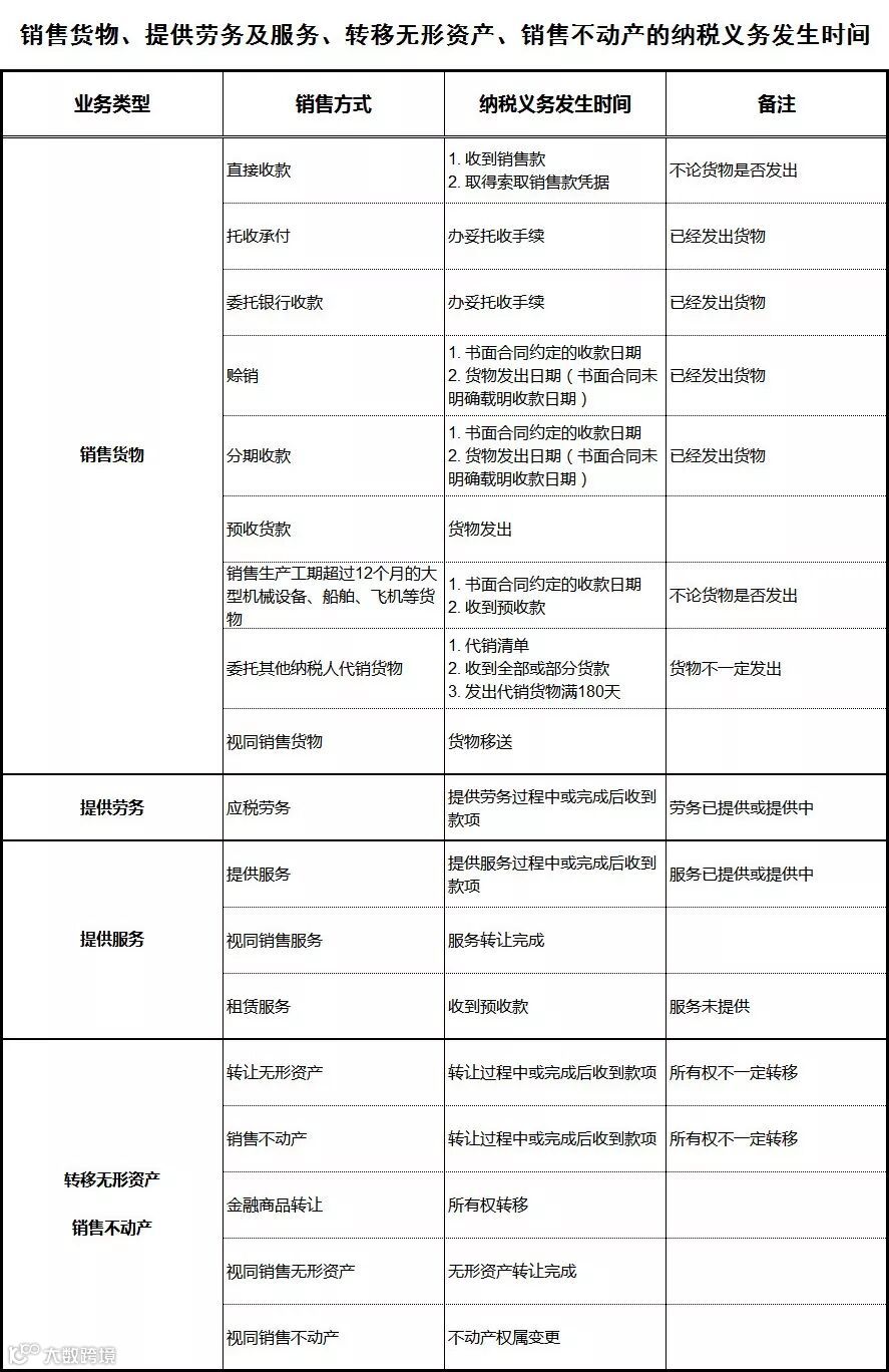 具体纳税义务发生时间可参考下图: