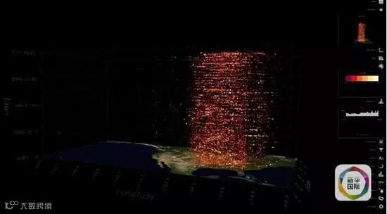 在微软创意中心,Surface Hub通过先进的数据搜集和分析技术,对过去40年间美国4万多次的龙卷风进行了汇总。密密麻麻的每个点都代表了一个龙卷风,而每个点的颜色和大小代表了龙卷风的强度。