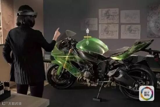 通过HoloLens全息眼镜和虚拟物品在真实空间中的互动,沈向洋展现了一辆摩托车从图纸、模型到交付生产的整个设计过程,HoloLens全息眼镜的到来颠覆了传统的工作模式,为人机交互带来了革命性的体验。