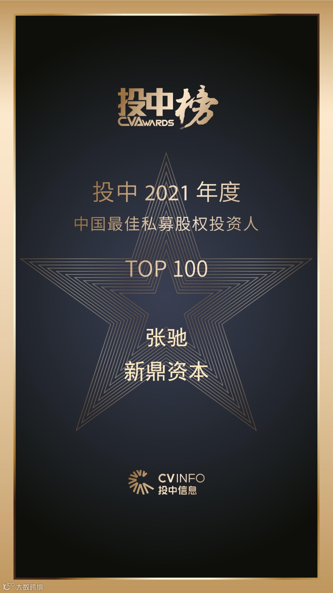 期间,投中信息发布2021年度投资人榜单,新鼎资本董事长张驰先生荣获投中「2021年度中国最佳私募股权投资人TOP100」殊荣。