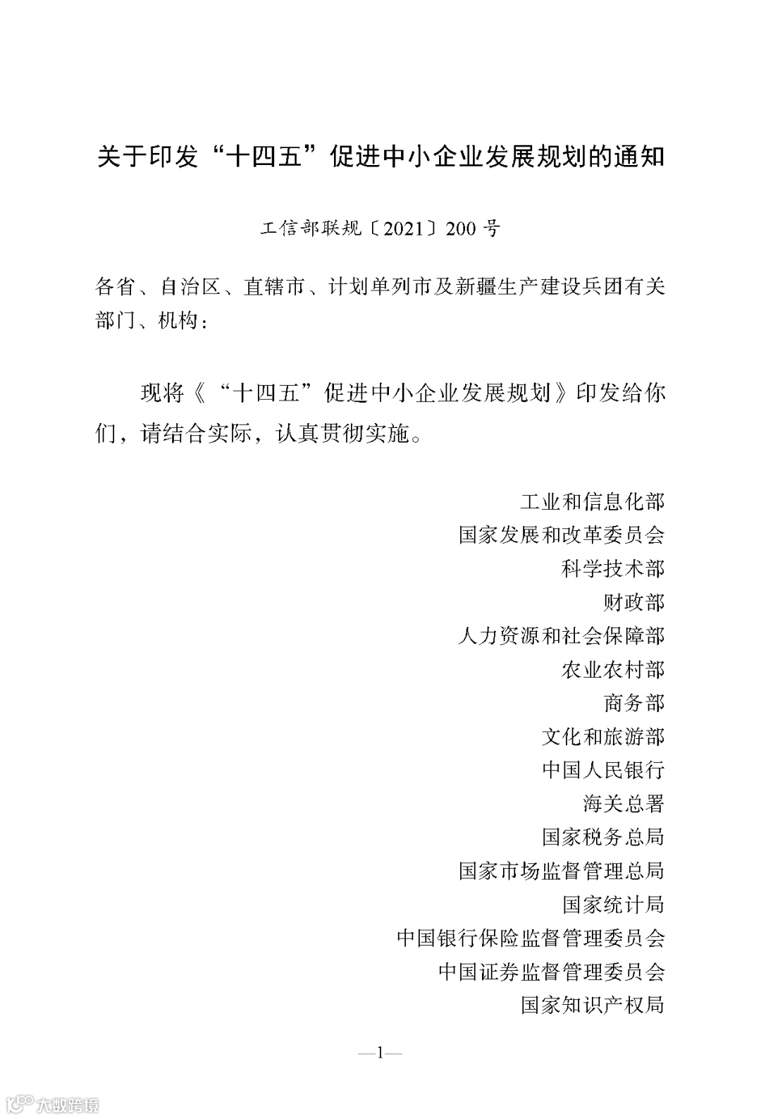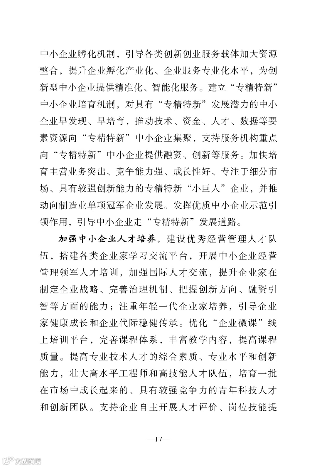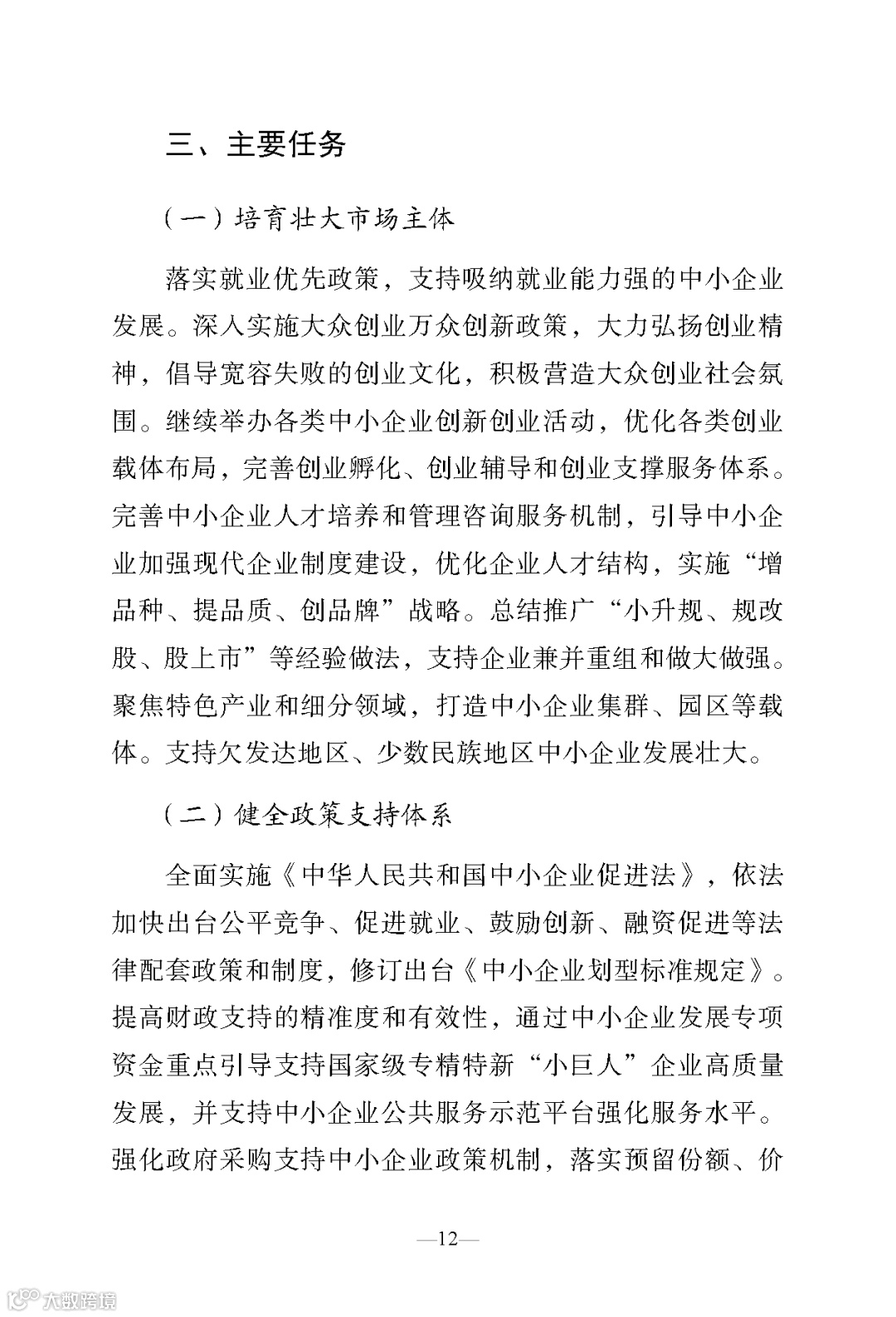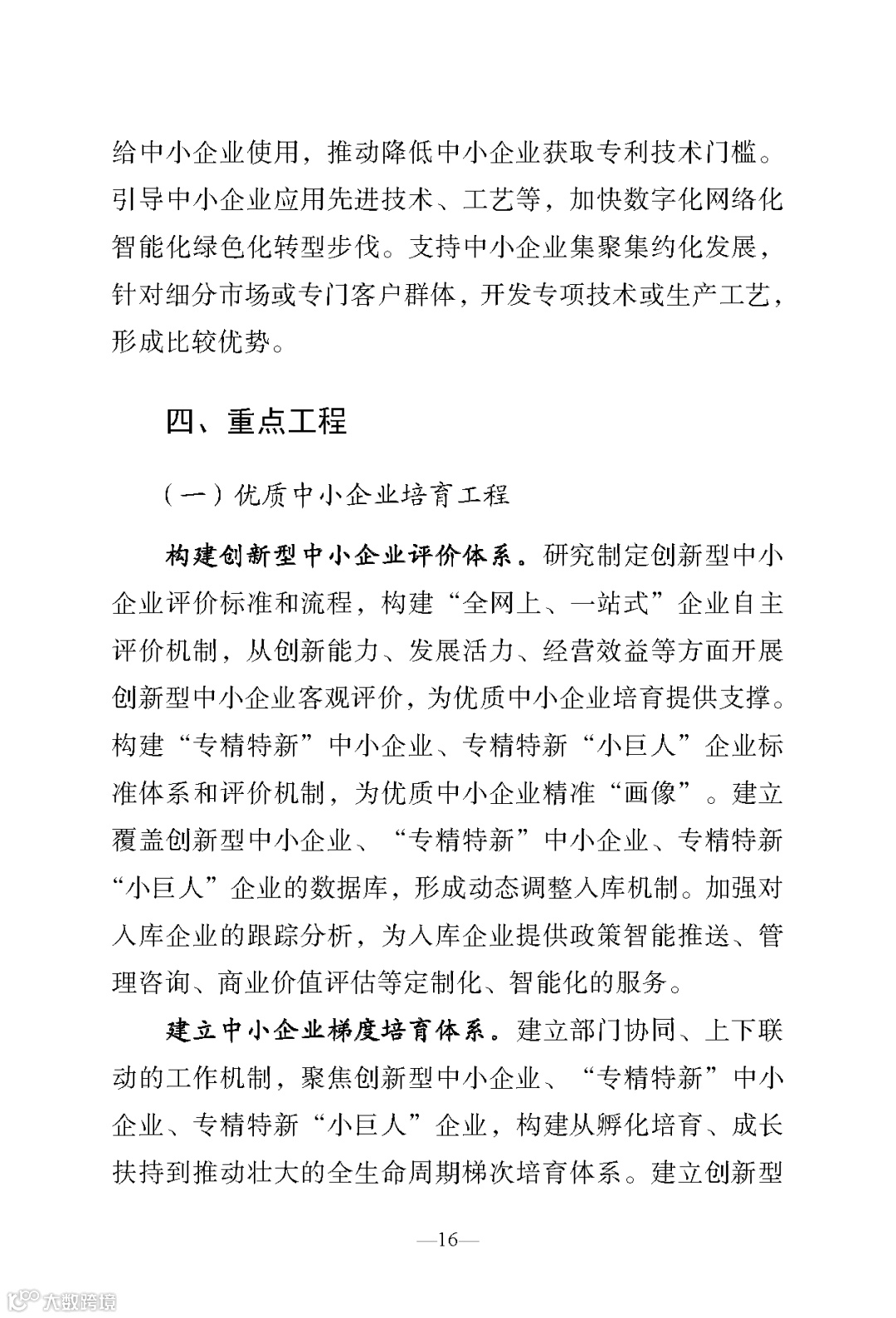 【关注】工信部:促进中小企业发展规划,推动形成10万家“专精特新”企业