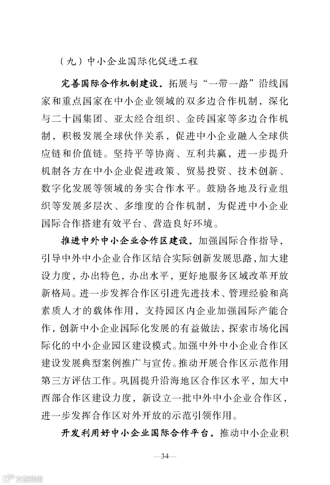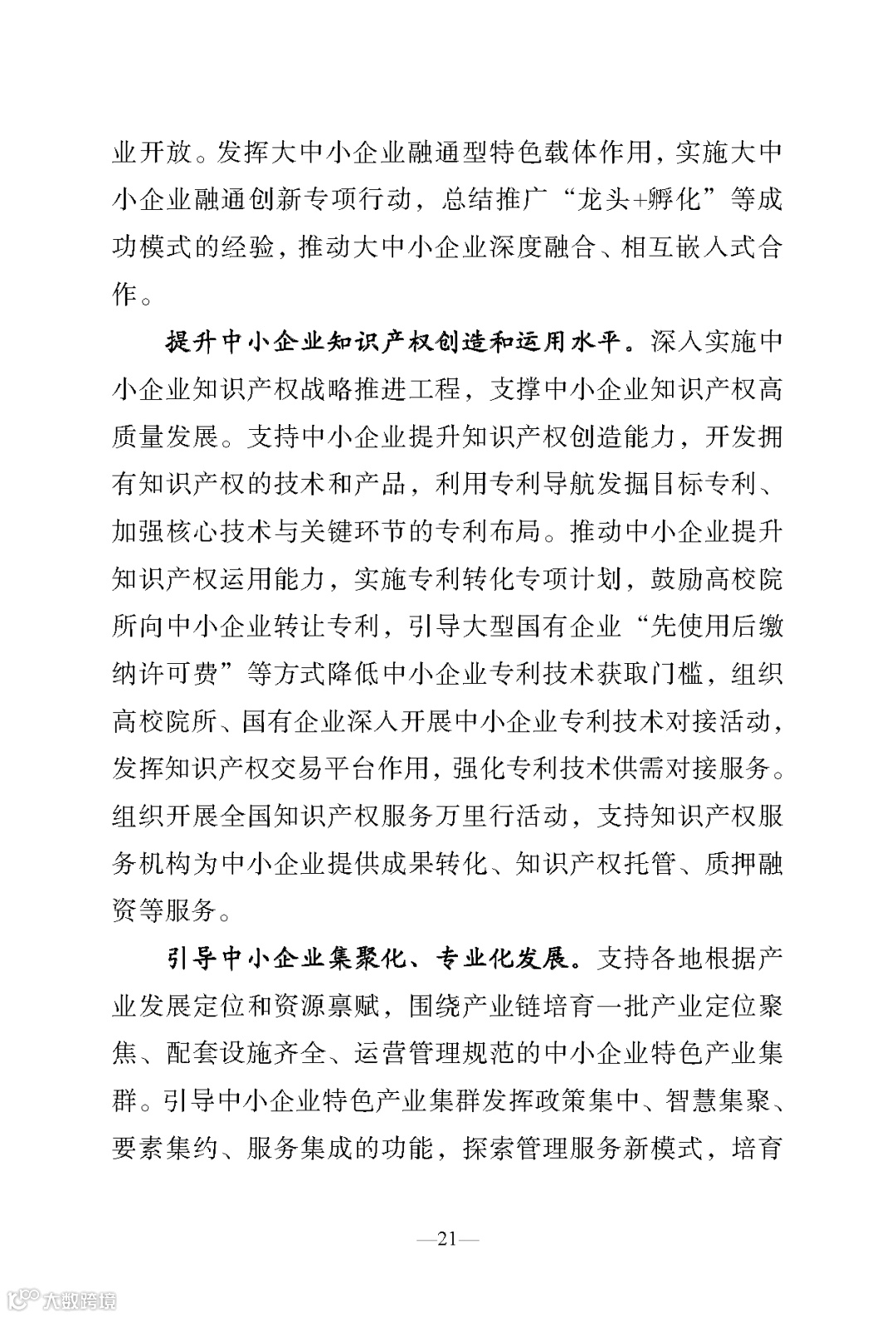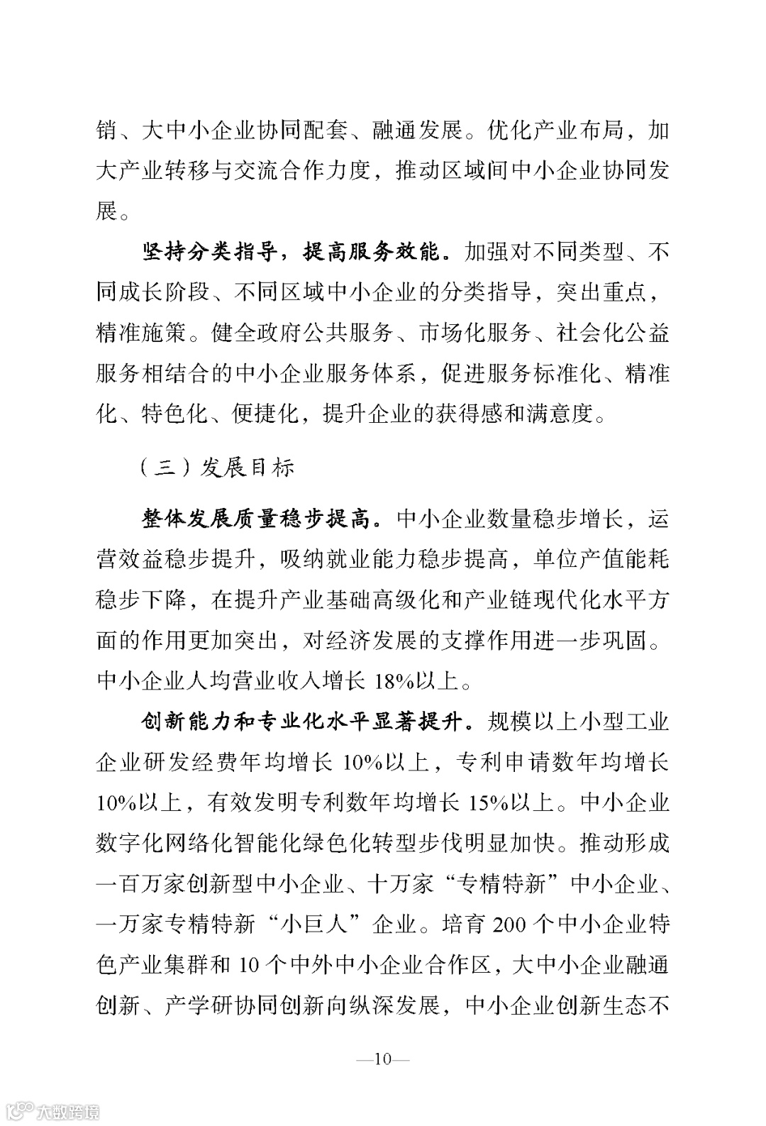 《规划》提出,推动形成100万家创新型中小企业、10万家“专精特新”中小企业、1万家专精特新“小巨人”企业。培育200个中小企业特色产业集群和10个中外中小企业合作区,大中小企业融通创新、产学研协同创新向纵深发展。