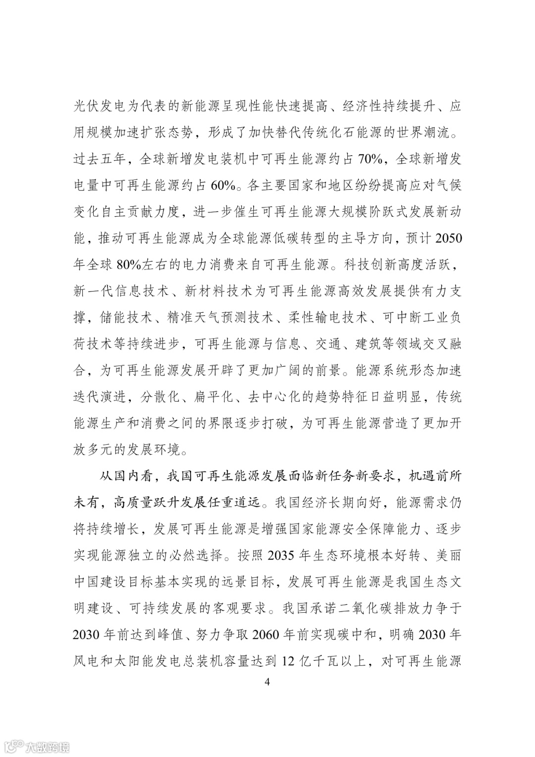 加强可再生能源与新能源技术创新合作。围绕构建新型电力系统,加强与相关国家在高效低成本新能源发电技术、储能、