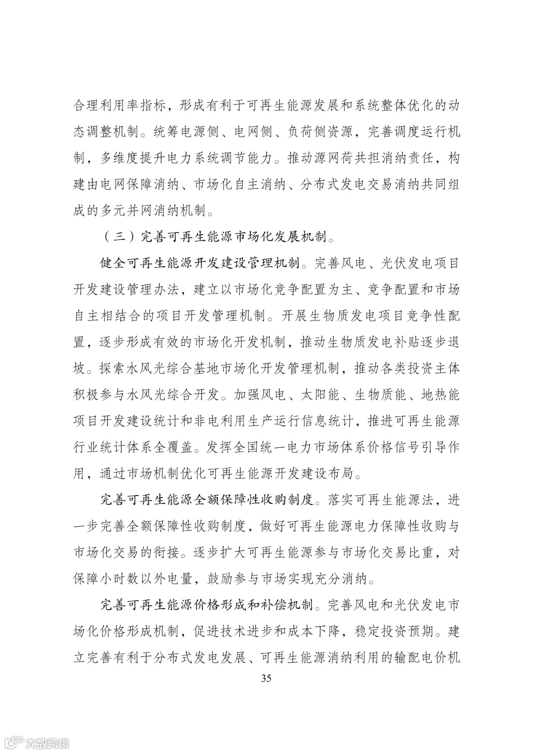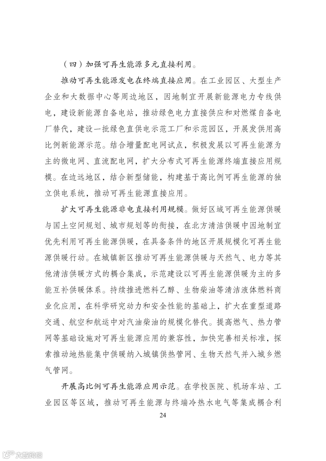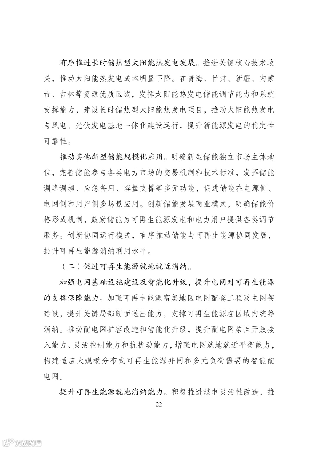 加快建设可再生能源存储调节设施,强化多元化智能化电网基 础设施支撑,提升新型电力系统对高比例可再生能源的适应能力。加强可再生能源发电终端直接利用,扩大可再生能源多元化非电利用规模,