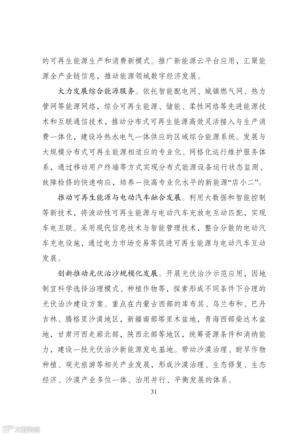 统筹推进陆上风电和光伏发电基地建设。发挥区域市场优势,主要依托省级和区域电网消纳能力提升,创新开发利用方式,推进松辽、冀北、黄河下游等以就地消纳为主的大型风电和光伏发电基地建设。利用省内省外两个市场,依托既有和新增跨省跨区输电通道、火电“点对网”外送通道,推动光伏治沙、