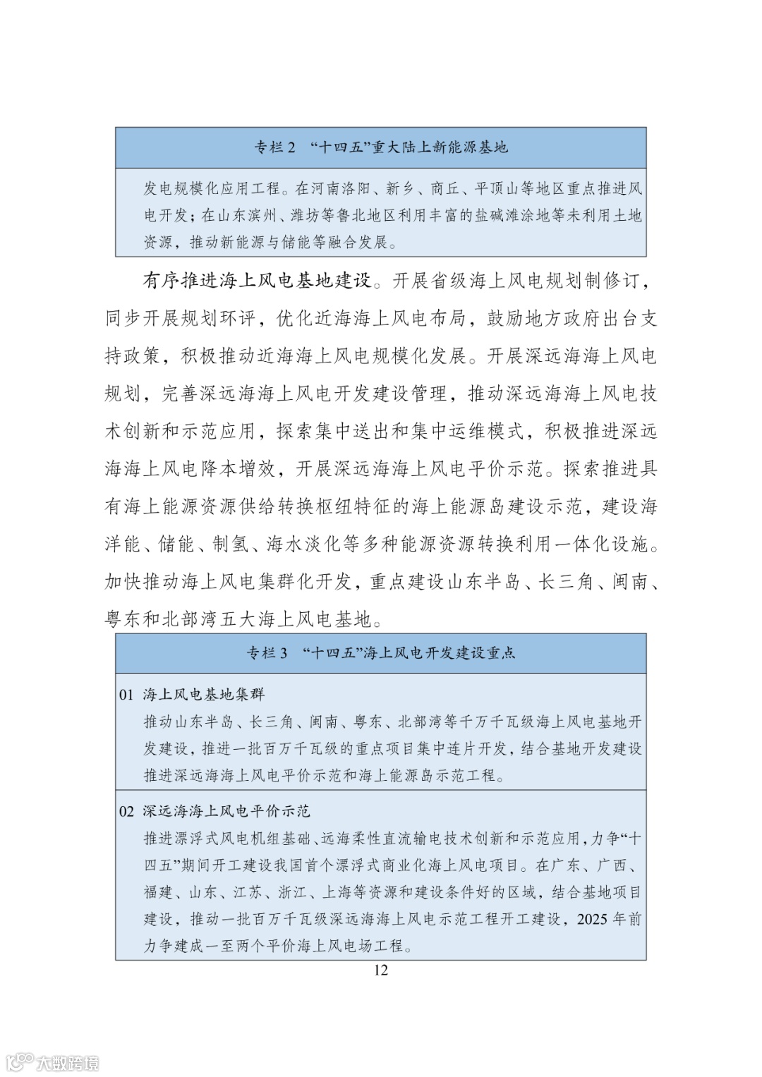 、海水淡化等多种能源资源转换利用一体化设施。加快推动海上风电集群化开发,重点建设山东半岛、长三角、闽南、粤东和北部湾五大海上风电基地。