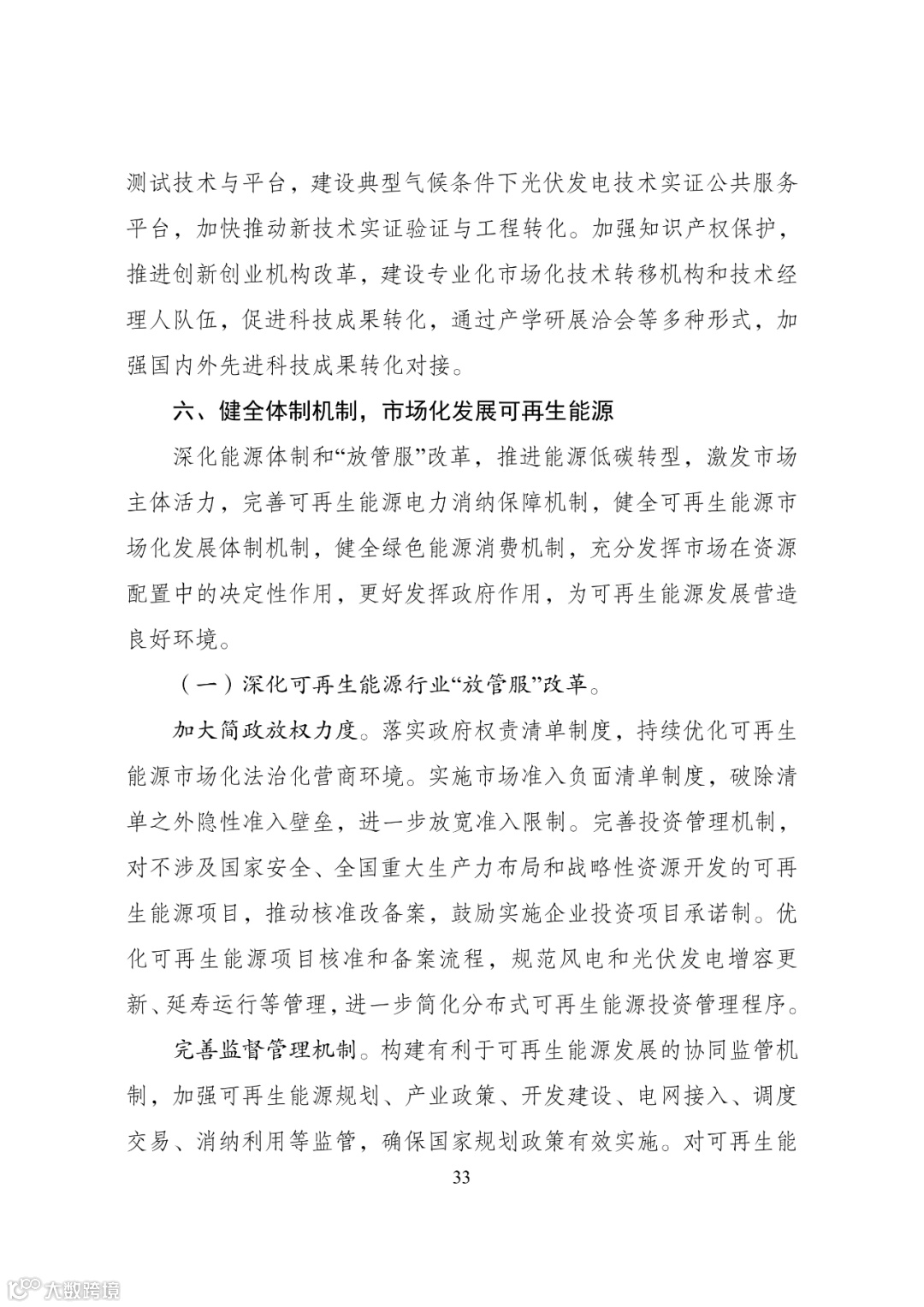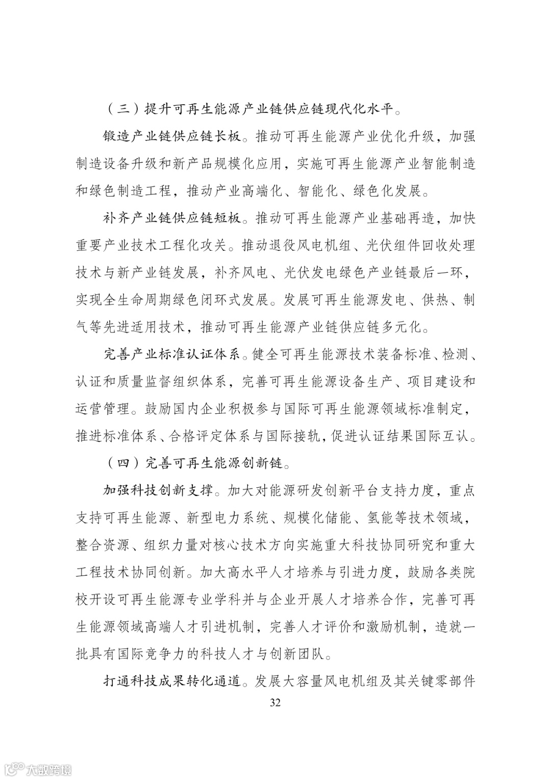等技术领域,整合资源、组织力量对核心技术方向实施重大科技协同研究和重大工程技术协同创新。加大高水平人才培养与引进力度,鼓励各类院校开设可再生能源专业学科并与企业开展人才培养合作,完善可再生能源领域高端人才引进机制,完善人才评价和激励机制,造就一批具有国际竞争力的科技人才与创新团队。
